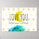 Anpassbare "Liebe Sie zum Mond und zurück" Sternmuster Hintergrund, gelber Halbmond und Erde.