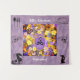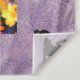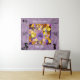 Eine Reihe von bunten Blume auf dem Display hinter einem Lavendel und gelben ovalen Rahmen, dass "Liebe blüht..Forever. Zwei kleine schwarz-weiße Vögel in der Mitte, die Herzen steigen. Text ist anpassbar.
