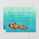 Liebende Clownfische im Meer Postkarte. Genießen Sie das niedliche, skurrile Fisch-Paar mit einem wunderschönen, aquamarin blauen Unterwasserhintergrund. Tier, Wassersport, tropisch, küstennah! Seien Sie ein Botschafter der Liebe mit Ihrem eigenen Gruß oder behalt das Zitat. Sie können auch alles andere hinzufügen, was Sie an der Vorder- oder Rückseite gewollt haben.