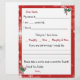 Hübsche rote Feriengrenze mit laksigen Schneeflocken. Jummy Bonbons mit roten Bändern zeichnen zwei Ecken aus. Personalisieren Sie Text und Schriftart, um den perfekten Brief an den Weihnachtsmann zu erstellen.