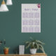 Helfen Sie Ihren Hochzeitsgästen mit diesem schönen Sitzplan, ihre Sitzplätze zu besetzen. Auf einem lila Hintergrund präsentiert sich das Design mit einer hübschen lila Blume-Anzeige am oberen Diagramm. Darauf folgt der Name des Paares, der elegant in lila kursiver Schrift geschrieben wurde. Darunter befinden sich Vorlagen zum Einfügen von Gästennamen in die zugeordneten Tabellen. Bestellen Sie die gesamte Kollektion für passende Artikel.