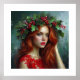 Liebliche Dame in Rot mit Holly-Blätter Poster