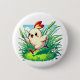 Ein lebendiger Knopf mit einem niedlichen Cartoon Huhn. Das Hühnchen hat ein hellrotes Wappen und wird durch ein großes, grünes Grasfeld mit fröhlichem Laufen dargestellt. Es gibt einen fröhlichen blauen Himmel und eine kleine weiße Blume blüht im Gras. Der allgemeine Ton des Bildes ist spielerisch und fröhlich.