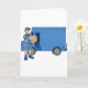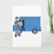 Dieses Design ist ein Lieferant und Lieferwagen. Der Lieferwagen ist blau und der Lieferant ist draußen stehend und trägt eine Kiste für die Lieferung. Dieser Lieferant und das Design des Van sieht großartig aus