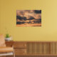 Orangenhimmel mit rauchenden Wolken bei Sonnenuntergang, die sich über der Sonne bewegen