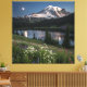 Lienzo de vista a la montaña, con un lago. y una linda luna