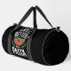 This black duffle bag features a fun, food-themed design with a bowl of pasta garnished with tomatoes and herbs, and the text "LIFE is BETTER with PASTA." This quirky design is perfect for Italian food lovers and pasta enthusiasts. Edit color of the bag caps and body in the Design tool to your favored colors.