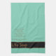 Waffelweberhandtuch ist aquafarben mit schwarzem und braunem Text und Streifen auf einem skurrilen Handtuch mit einem niedlichen Saum auf Leben. Anpassen oder kaufen, wie es ist.