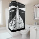 Eine Schwarz-Weiß-Abbildung des Leuchtturms am Ende der Felsbank in Nelson, Neuseeland. Dieser Leuchtturm befindet sich in der Schnittnähe und hat Haulashore Insel im Hintergrund. Das helle Haus beleuchtet den Nachthimmel, zeigt Nelson Buchten und sieht Möwen fliegen.