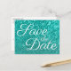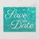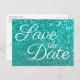 Light Aquamarin Bokeh Glitzer Save the Date Postkarte