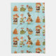Fun cartoon animal print on a light blue background features cows, pigs, and bunnies gardening with tools and flowers. Cheerful and playful vibe.