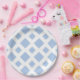 Stilvolle, geometrische Muster großer und kleiner hellblauer Diamanten auf weißem Hintergrund. Das Weiße bildet ein Gitter, das die blauen Säuglingsformen trennt. Digitales 9000 x 6000 Pixel Bild. Copyright ©2013 Claire E. Skinner, Alle Rechte vorbehalten.
