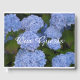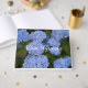 Ein schöner Busch voller blühender hellblauer Hydrangeas. Romantische Blume. "Unsere Gäste" auf der Vorderseite. Dies kann nach Wunsch geändert werden.