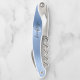 Dieser personalisierte Korkenzieher zeichnet sich durch einen modernen hellblauen, gebürsteten Metallhintergrund aus. Passen Sie es mit ihrem Namen in einem stilvollen schwarzen Handschriftenskript über eine weiße Monogramm-Initiale an.