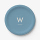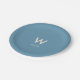 Trendy Personal Party Paper Teller mit hellblauem Hintergrund, großen zentrierten Monogramm und dazugehörigem Namen. Saubere, einfache minimalistische Typografie. Vollständig personalisierbar.
