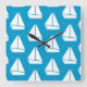 Light Blue Sailboat Pattern Quadratische Wanduhr