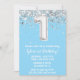 Light Blue Silver 1. Geburtstag Party Einladung