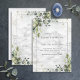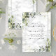 Erleben Sie die typische botanische Hochzeit mit diesem strahlend blauen Eukalyptus-Ambiente, einem üppigen, grünen Design mit Imitaten Carrera-Marmorhintergrund, Aquarellstrümpfen, Imitaten Goldstaub und trendiger Schriftzeichen. Die Einladung ist Teil einer Sammlung. Copyright Elegant Invites, alle Rechte vorbehalten.