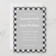 Erstellen Sie Ihren eigenen Büffel-kariert oder Gingham-Karo Save the Date, indem Sie die Hintergrundfarbe anpassen. Diagonal Weiß und Schwarz Klassik Gingham Karo Muster. Das Muster ist ein nahtloses Set mit 45 Grad Drehung, obwohl man das ändern kann. Sie können auch die Schriftart-Auswahl und die Farbgebung anpassen. Das hellgraue Rechteck kann angepasst werden.