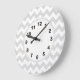 Light Gray White Chevron Zig-Zag Pattern Große Wanduhr