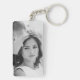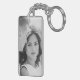 This keychain features an oversized line art drawing of chrysanthemums in light grey over a white background with a personalized name on one side, and your own favorite photo on the other side. Original art from Dogwood & Thistle.