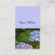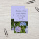 Eine atemberaubende Hydrangea-Visitenkarte. Hellviolette Hydrangeas mit hellgrünem Blattwerk. Ein heller lila Hintergrund mit Text. Passen Sie Ihre persönlichen Daten auf Wunsch an.