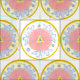 Stoffmuster, inspiriert durch mediterrane Blumenmuster, 1993 für ein Tischdeckenmuster-Design geschaffen, zentrieren sich diese blühenden, blumengeschmückten Medaillen ineinander - die China von Kristie Hubler, Muster genannt "Light Passion", für eine Platte - Farben Rosa, Blau, Creme, Gelb, Gold