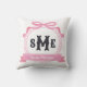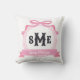 Dieses charmante, chinoiserie-artige Wurfkissen besticht durch ein volles Monogramm, das von einem klassischen griechischen Schlüsselkreis gerahmt und mit einem süßen Bogen überragt wird. Ein personalisierter Name Banner fügt eine raffinierte, individuelle Touch hinzu, die dieses Design perfekt zum Gaben oder Stylen einer preppy Zuhause macht. Mit seiner tausendjährigen Eleganz und dem schicken Palm Beach-Stil ist es ein idealer Akzent für Kinderzimmer-Segelflieger, Schlafzimmersessel oder kuratierte Sitzecken. Wählen Sie ein Single-Initial, das für einen Vor- oder Nachnamen steht (z.B. S für "Susan" oder W für "The Windhams") oder ein komplettes 3-Buchstaben-Monogramm. Verwenden Sie den freien Text auf dem Banner für einen vollständigen Namen, Vornamen oder Familiennamen. Bei Bedarf sind alle Farben im Zazzle-Design-Tool anpassbar.