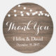 Rustikaler Dank Ihnen Gastgeschenk Hochzeit Sticker mit leichten Fäden. Passen Sie Ihre Namen und Ihr Datum an.