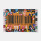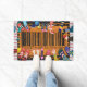 Ein gemaltes Türmchen mit einem Barcode-Muster, mit verschiedenen Füßen und Schuhen stehend. Herzlich willkommen bei Ihren Lieben mit diesem - Amusing Barcode Design - Scannen Sie Ihre Füße, bevor Sie Doormat.