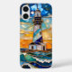 Bright and coastal-inspired, this phone case features a lighthouse by the ocean at sunset in a stained-glass–inspired design with vibrant colors and clean composition.