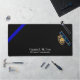 Customisez ce tapis de bureau en remplaçant notre patch d'agence par une image haute résolution de votre propre patch ou badge d'agence. Nos conceptions originales Thin Blue Line sont très professionnelles et un bel ajout à n'importe quelle maison ou bureau. Obtenez-en un pour vous-même ou vos employés. Vous pouvez également les attribuer à vos employés les plus productifs ou ils font également de grands cadeaux pour les départs à la retraite, les promotions ou les réalisations spéciales. Cette conception vise à honorer les hommes et les femmes courageux qui protègent nos collectivités. Ce design propose également des plaques de bureau, des plaques de portes et des cartes de visite assortis.