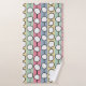 Ce kit de serviettes est doté d'un linge vert, d'une serviette bleue et d'une serviette de bain au design moderne du milieu du siècle de cercles blancs "déformés" reliés par des lignes noires sur un terrain de bandes vert pâle, rose pâle, bleu pâle et jaune pâle. Si vous aimez le design mais préférez différentes couleurs, envoyez-moi un message.