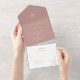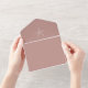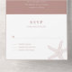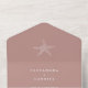 Ce design faire-part de mariage est un parfait mélange d'élégance et de beachy. L'élément principal de l'invitation est un petit motif d'étoiles de mer blanc qui se trouve gracieusement au centre de l'arrière - plan couleur terre cuite. Le motif de l'étoile de mer est conçu de façon complexe et ajoute une touche de nature à l'invitation. La couleur terre cuite de l'arrière - plan est chaleureuse et accueillante et donne le ton à un mariage terreux au bord de la plage. La typographie utilisée dans cette conception d'invitation est blanche classique, ce qui ajoute une touche de sophistication et assure que le texte est facile à lire. Le style de police utilisé est propre et moderne, créant un look intemporel qui ne sortira jamais de la mode.