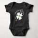 Dress up your baby for St. Patrick's Day mit diesem niedlichen, Lil' Lucky Charm Design mit einem viel Glück vierblättriges Kleeblatt in weiß und mit Schnörkeln und Herzen Akzent. Hier auf einem schwarzen Babyanzug gezeigt. Passen Sie dieses Design an, um es perfekt für jedes Baby zu machen!