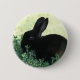 Ein schwarzes Minirex Kaninchen, das im Gras sitzt.