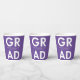 Personalisierte Abschluss-Papiertassen mit "Grad" in fett weißer Schrift mit einem lila Hintergrund oder einer Farbe Ihrer Wahl. Personalisieren Sie die Papiertassen des Abschlusses, indem Sie den Namen des Absolventen und das Abschluss Jahr. Die Papiertücher aus lila und weißem Abschluss sind sowohl für Partys der Oberstufe als auch für Uni-Abschluss geeignet.