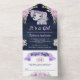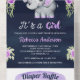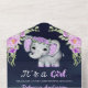 Erleben Sie Ihren Gast mit dieser eleganten Babydusche und einem niedlichen Elefanten mit wunderschönen Blume auf marinebasischem Hintergrund mit abnehmbarer Gewinnerkarte. Fügen Sie einfach Ihre Veranstaltungsdetails zu dieser einfach zu bedienenden Vorlage hinzu, um sie zu einer einmaligen Einladung zu machen.