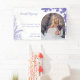 Eine Hochzeitsankündigung mit einer lächelnden Braut, die einen Bouquet Lavendels Blume hält. Der Text lautet: "Schöne Anfänge - "Liebe besteht aus einem Single-Soul, das zwei Körper bewohnt." Callahan & Ava, 09. Juli 2024." Die Blumengrafiken des Lavendels schmücken die Kanten der Karte.