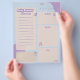 Bleibe stilvoll mit dieser lila ästhetischen Tagesplanerseite organisiert. Dieses Design, das Abschnitte für Goals for Today, Erinnerungen, Dringlichkeitsaufgaben und Notizen enthält, verbindet Minimalismus mit einer niedlichen Touch, zu der Musiknoten, Bögen, Schmetterlinge und weiche Pastelltöne zählen. Ideal für Produktivitätsbegeisterte, Studierende und Profis, die ein optisch ansprechendes und funktionales Layout genießen. Ideal für den Einsatz als Planereinlage, als Schreibtischblatt oder als tägliche Aufgabenliste. Details: Weiche lila und beige Farbgebung für ein ruhiges, stilvolles Ambiente Sektionen für eine einfache tägliche Organisation Arbeitet perfekt für Zuhause, Schule oder Büro Großes Geschenk für Schreibwarenliebhaber und Planersüchtige