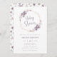 Einladung zur lila Babydusche. Dieses stilvolle Baby-Duschbad mit seiner sanften, traumhaften und romantischen Dusche verfügt über einen wunderschönen Aquarellkranz aus Blätter und Blume, die in monochromen Farbtönen lila, pflaumenfarben und sanften Farbtönen mit lila Schrift & Text-Note bemalt sind. Die Rückseite der Einladung enthielt ein skurriles Muster. Finden Sie passende Artikel in der eleganten Lila Botanischen Hochzeitssammlung.