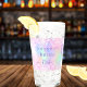 Ein angesagter holografischer Hintergrund mit Einhorn- und Regenbogenfarben in Rosa, lila, Rose Gold, Minzgrün. Dekoriert mit rosa Konfetti. Personalisieren und fügen Sie einen Namen, geschrieben mit einem modernen handgeschriebenen Stil Skript. Lila Buchstaben.