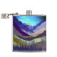Eine abstrakte Landschaft mit einzigartigen Texturen, die eine lila und Lavendelberglandschaft mit atemberaubendem blauen Himmel und Vogelschwarm in lila, Lavendeltönen, Beige, Gelb und Rosa zeigen.