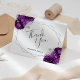 Diese elegante, moderne Hochzeitskarte besticht durch einen silbernen geometrischen Rahmen, der mit violetten Blumen und silbernen Imitaten auf weißem Hintergrund verziert ist. Die Wörter "Danke" erscheinen in der skurrilen Schrift "Holzkohle-Graue Handschrift", die Namen des Paares sind unten kursiv.