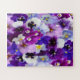 Ein lila Puzzle mit blauen Stiefmütterchen.