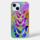 Lila BLAUENSCHALTFLÄCHE, GRÜNE GOLDGLITZERN iPhone 15 Hülle
