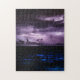 Heller lila Blitz gesehen nachts über einem tiefen blauen Ozean.