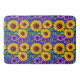 Lila Blumen und gelbe Sonnenblumen Badematte