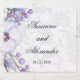 Dieses hübsche Damastweinetikett hat einen farbenfrohen lila und blauen Beerenstrauß auf einer Seite. Unter dem personalisierten Text mit den Namen der Braut und des Bräutigams sowie dem Hochzeitstag befindet sich ein elegantes Damast-Muster in weichem Grau.