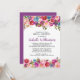 Belle florale estivale aux tons violets, roses et bleus. Le nom de la mariée est écrit dans un magnifique script mauve qui coule. Le reste du texte est dans une police majuscule simple et élégante. Le fond de l'invitation est violet profond. Cependant, vous pouvez le changer à n'importe quelle autre nuance de violet ou de couleur. Vous pouvez également modifier la couleur du texte.